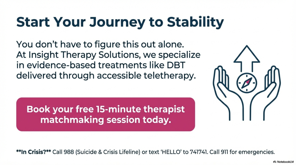 If you or someone you love is struggling with BPD and relationship challenges, know that help is available. At Insight Therapy Solutions, our therapists specialize in evidence-based treatments like DBT and are here to support you toward mental healing.