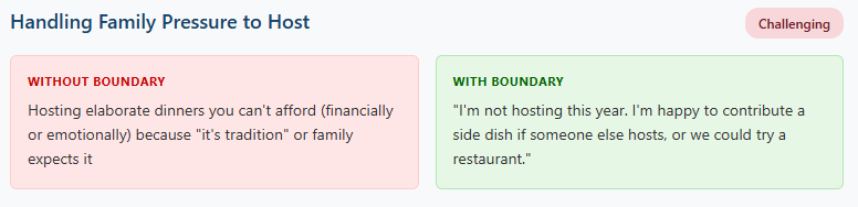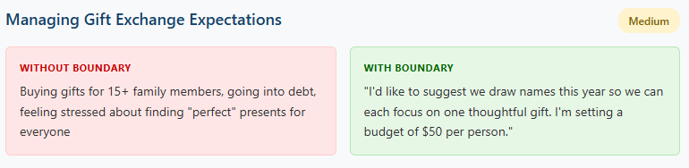 The constant decision-making required during the holidays (what to buy, where to go, how to respond to invitations, how to handle family dynamics), creates decision fatigue that further depletes your mental resources.
