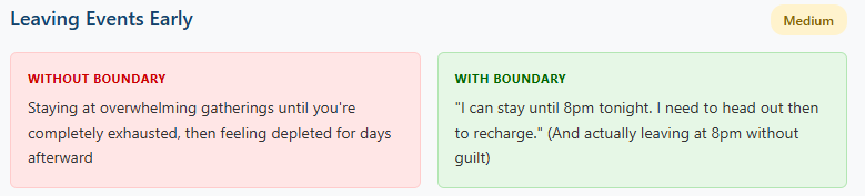 When you know you’ll be entering overstimulating environments—like crowded stores or loud parties—plan your recovery time in advance. Give yourself permission to leave early, take breaks, or skip events entirely when you’re already feeling overwhelmed.