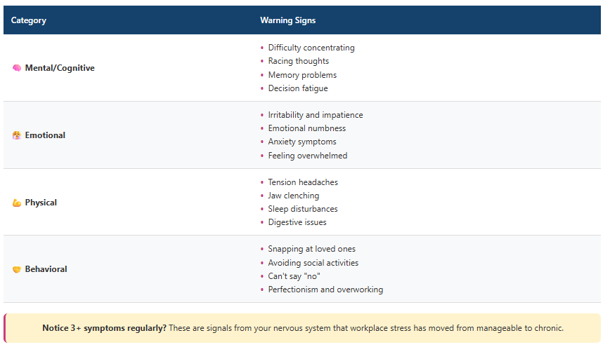 High-functioning stress is deceptive. Unlike high functioning burnout that brings everything to a grinding halt, this type of workplace stress allows you to keep moving and delivering results. But beneath the surface, your nervous system is running on overdrive.
