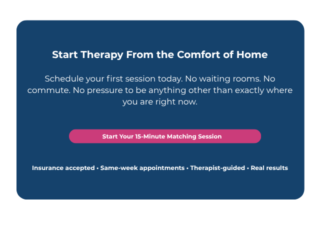 Schedule your first session today. No waiting rooms. No commute. No pressure to be anything other than exactly where you are right now.